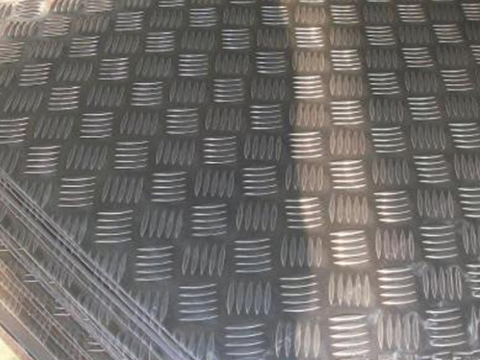 五條筋合金花紋鋁板:五條筋防滑鋁板也叫柳葉花紋板,鋁合金花紋板。廣泛應(yīng)用于建筑(樓板)平臺(tái)設(shè)計(jì)等。由于鋁板表面花紋與五種凹凸花紋平行排列,且每一種花紋與其他花紋呈60-80度角,故該花紋具有良好的防滑性能。這種鋁板在國內(nèi)常用作防滑材料,防滑效果好,價(jià)格低廉。